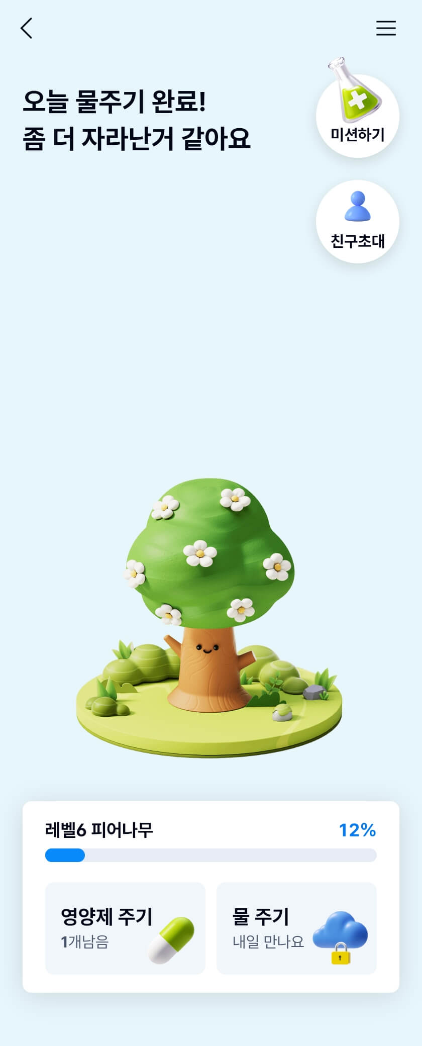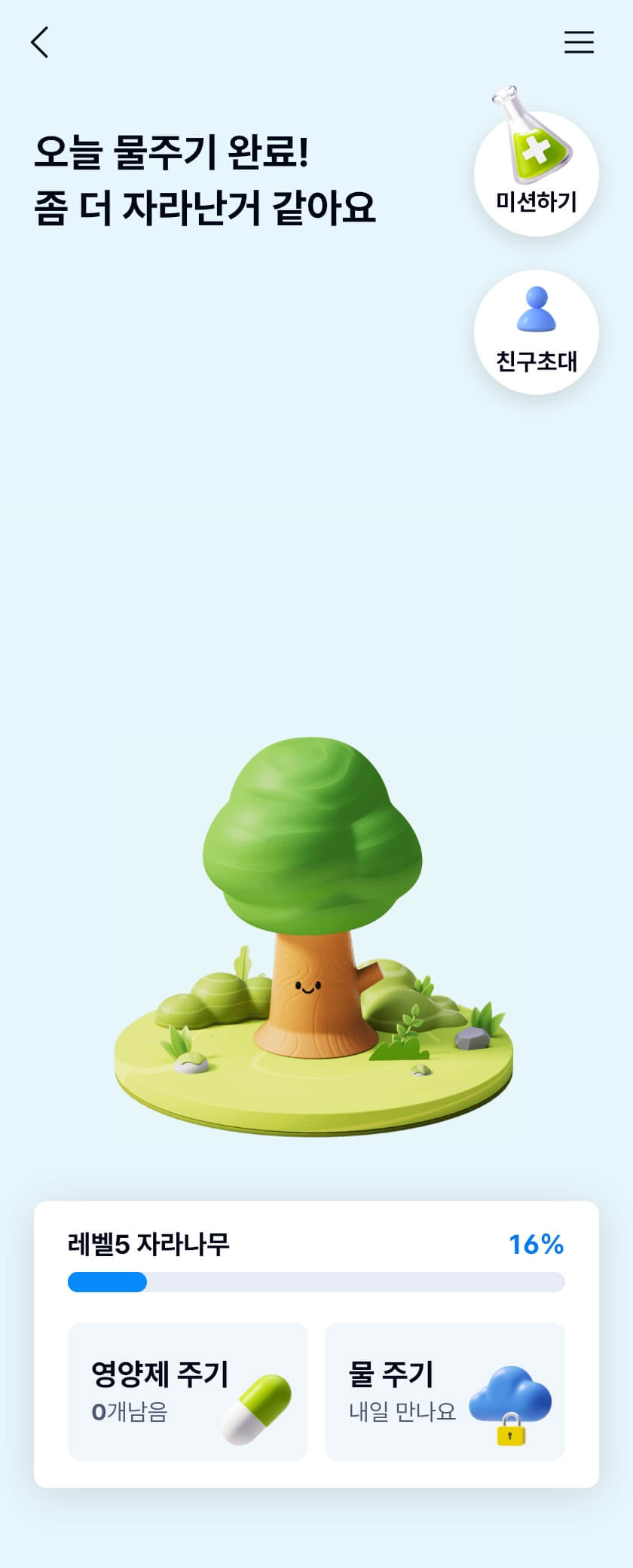 돈나무를 건강하게 키우기 위해서는 영양제가 필요합니다. 영양제를 받기 위해서는 서비스 우측 상단에 있는 '미션하기' 버튼을 눌러 오늘 수행할 수 있는 미션을 확인하세요. 미션은 다양하며, 수행만으로도 영양제를 받을 수 있습니다. 예를 들어, '구경하기', '알아보기', '보러가기' 미션은 해당 페이지에 방문하기만 하면 영양제가 지급됩니다!